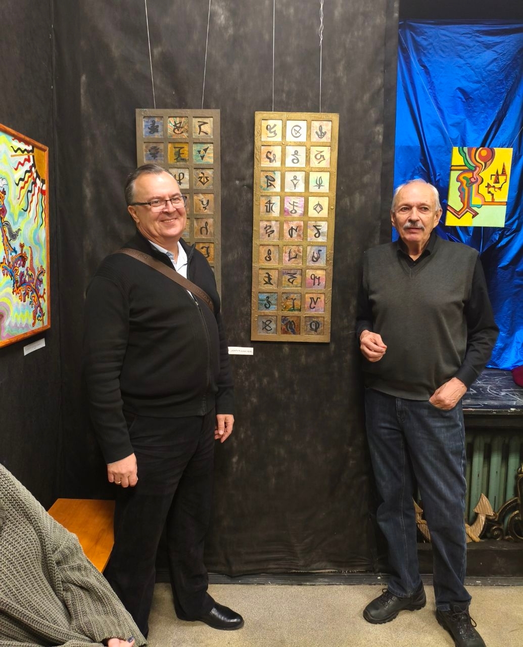 Как я уже написала, на выставке были представлены два планшета с двадцатью семью «ключами-знаками» на каждой. В своем выступлении Геннадий рассказал, как пришел к созданию своих изображений.